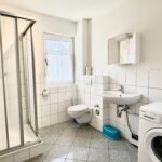 und ein Kleiderschrank - ein Bad mit Dusche, WC, Waschbecken, Spiegelschrank