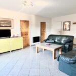 - ein Wohnzimmer mit Eckcouch in Leder, Anrichte, Tisch, WLAN,
