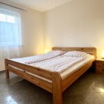 Das Apartment im EG links verfügt über ein Wohnzimmer mit Küchenbereich, zwei Schlafzimmer, ein Bad und Terrasse.