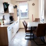 Gefrierfach, Toaster, Kaffeemaschine, Wasserkocher) - ein Essbereich mit Tisch, 4 Stühle