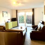 Das Apartment im EG rechts verfügt über ein Wohnzimmer mit Küchenbereich, zwei Schlafzimmer, ein Bad und Terrasse
